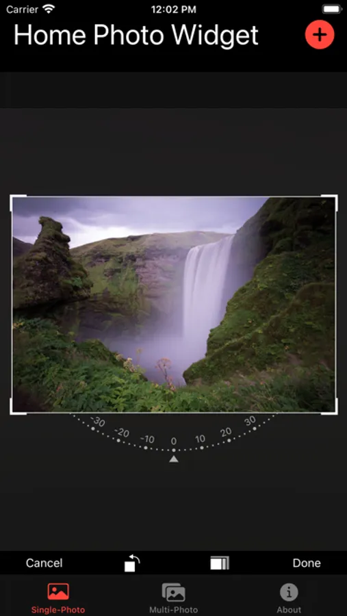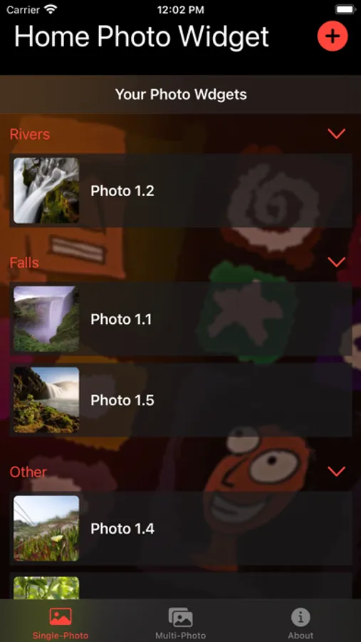 1. Import the picture or pictures you want to show on the home screen as a widget to the app. You can add it/them to a folder (new or existing)