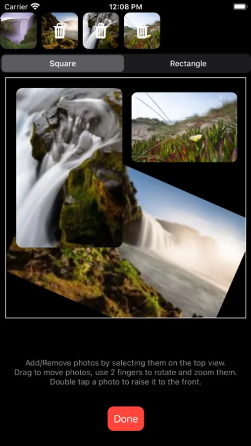 Unlock the app to also creat multi photo widgets that display each picture for your chosen amount of time or at specific times in the order you want. Also make mosaics from your pictures: