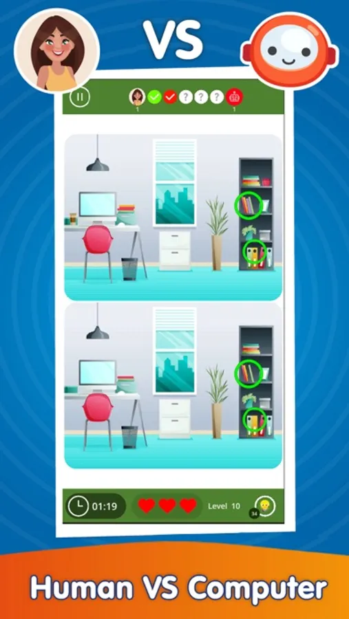 Enjoy Tap the difference puzzle game with countless level challenges,Brain teaser puzzle game to increase visual attention and it will sharpens your mind.your job is just to find and spot difference between the two pictures.Ultimate find the differences is a popular observation game like Hidden Object game that won't let you stop playing.