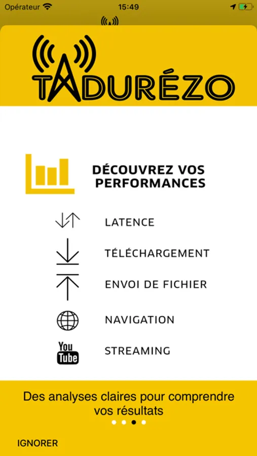 L’utilisation de l’application « TADURÉZO » nécessite la consommation de données de votre abonnement mobile (sauf en mode Wif-Fi) donc il faut veiller à avoir une utilisation raisonnée des tests notamment dans le cadre dans du menu « test itinérant ».