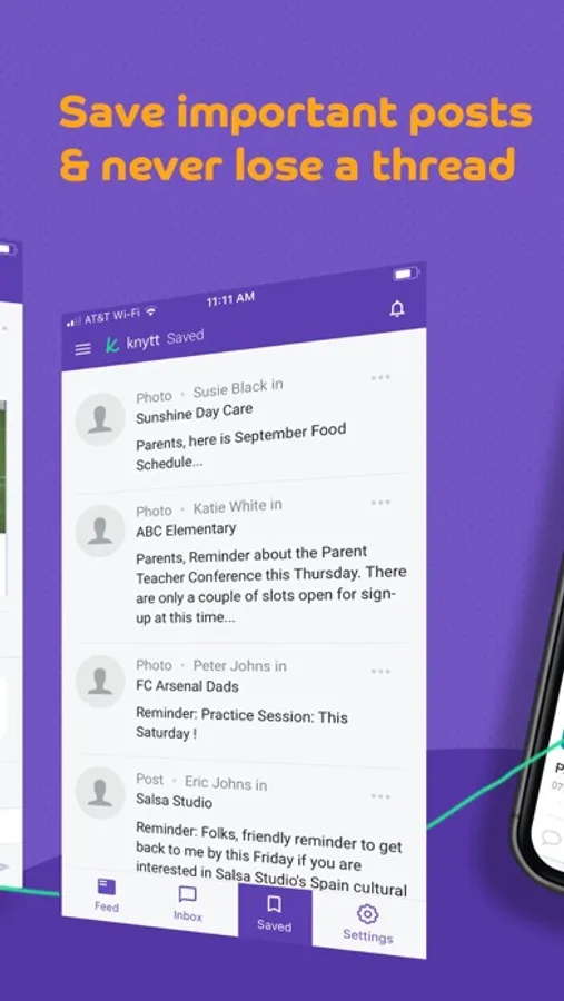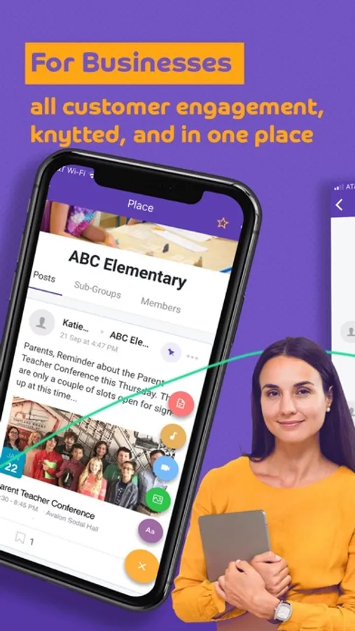 Knytt can be used by businesses in any market segments. So for end users can have all the businesses and groups in their lives at one place, including their kids' (e.g. schools, sports clubs/teams, recreational/performing arts classes, cultural/religious organizations).Thus, they can keep track of all of their family activities from one app and not waste time searching through e-mails, websites, paper handouts, and other third party apps and services.