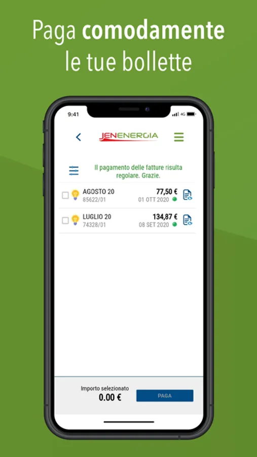 Con l'App gratuita di Jen Energia puoi gestire le bollette, comunicare l’autolettura e verificare lo stato dei tuoi pagamenti di Gas ed Energia Elettrica con un semplice click.