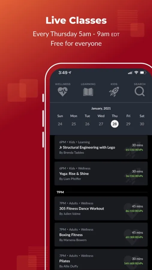 Search videos for Adults and Kids classes and watch for free. Make and share personalized playlists. Get access thousands of on demand video across variety of topics including leadership, wellness, kids activities and learning.
