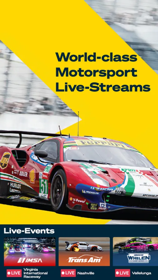• Access to world-class motorsport LIVE streams, including IMSA WeatherTech SportsCar Championship or GT World Challenge