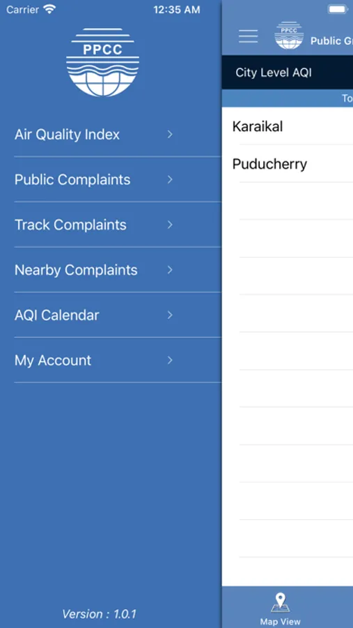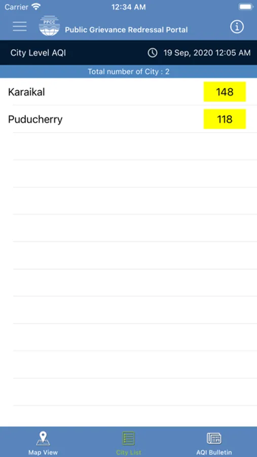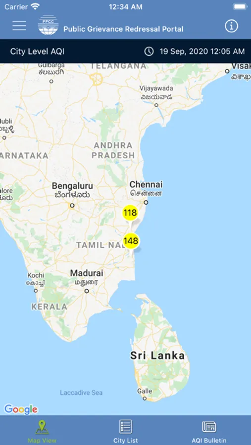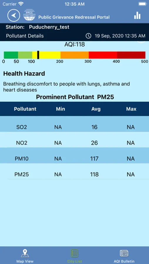 Public Grievance Portal is to register the public complaints related to air pollution in the non-attainment cities of Puducherry. It also provides Air Quality Index (AQI)