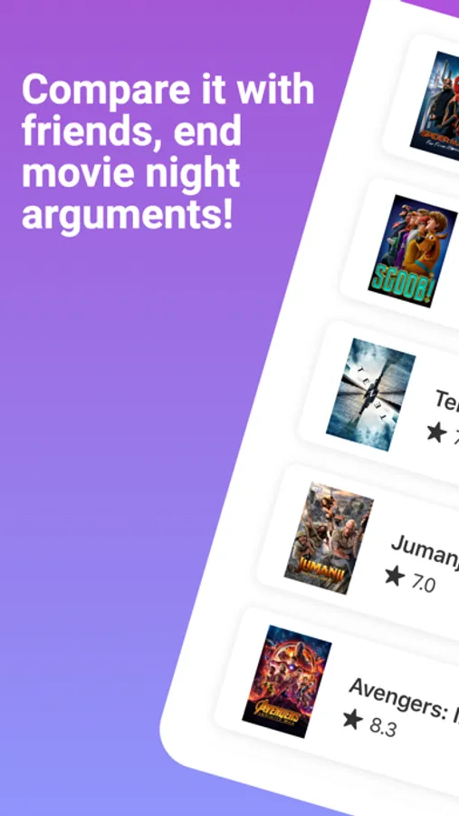 Make movie night easy. Use the simple swipe card mechanism to indicate which movies you want to watch, then easily compare your list with a friend using the QR code or share link!
