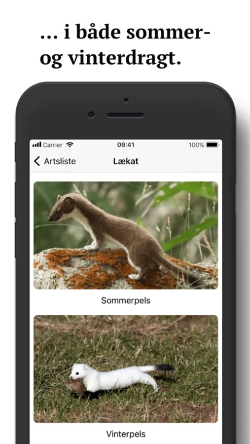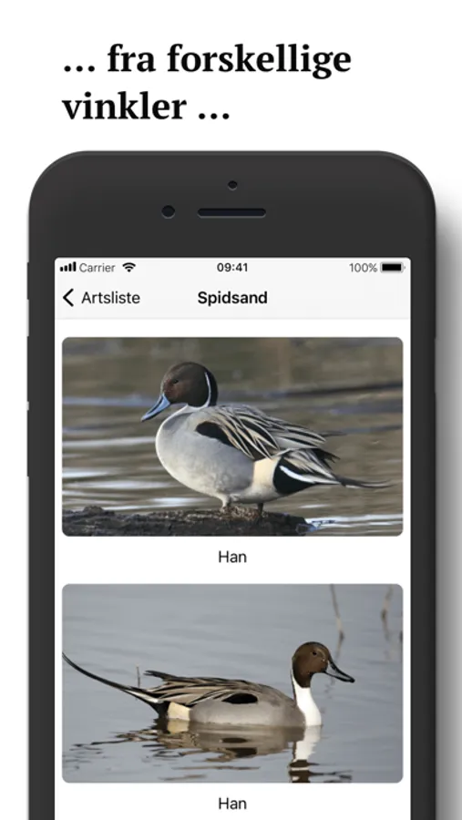 Appen har mange forskellige billeder af arterne, så du lærer at genkende arter: