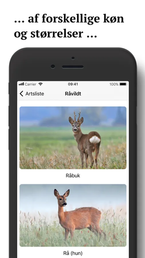 Jægerappen indeholder opgaver og en artsliste over alle de arter, der er inkluderet i pensum til jagtprøven. Appen lærer dig hvad du behøver at vide om vildtkending.