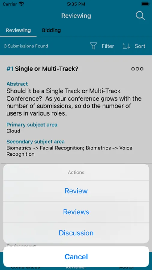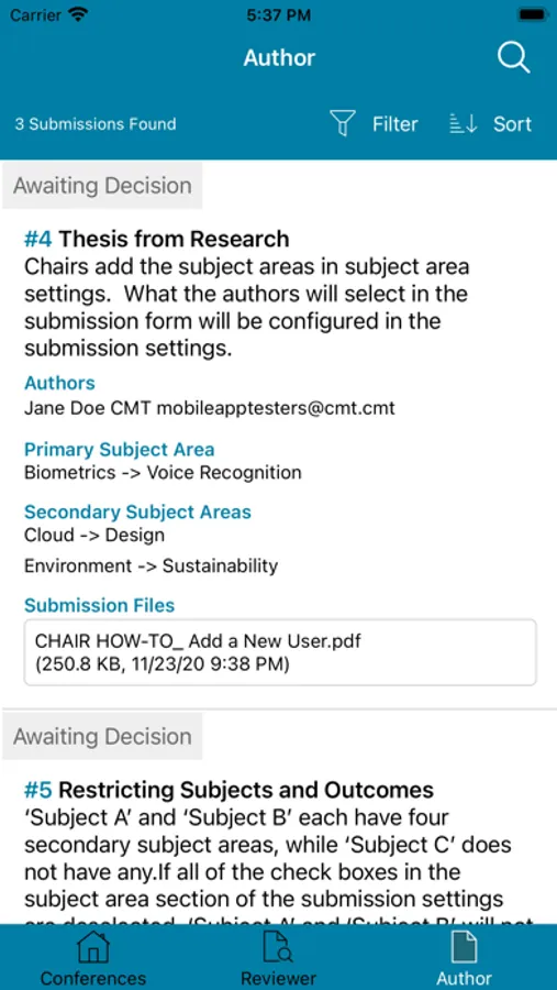 Conference Management Toolkit (CMT) is one of the most versatile and scalable conference management systems. Conferences with many thousands of papers run smoothly on CMT's cloud-based platform every day. The app allows authors to keep track of submitted papers on the move, and receive notification from chairs about their paper's status. Reviewers can browse and bid on conference papers, view the PDF of assigned papers inside the app, view others' reviews, participate in discussion and receive notification.