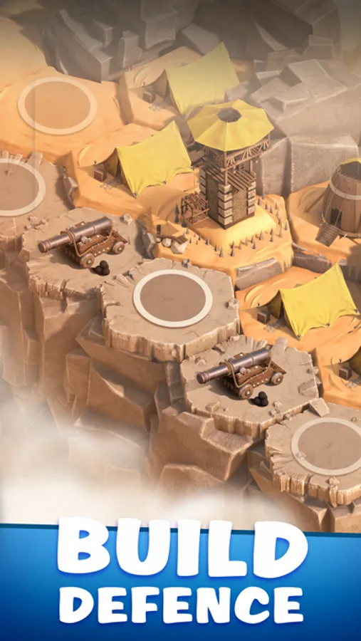 - Create your own fort or stronghold on the flying island while building defenses and upgrading your cannons;