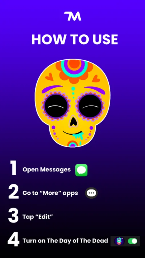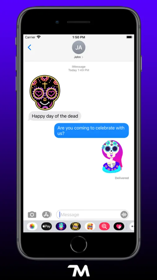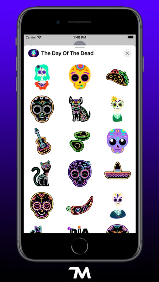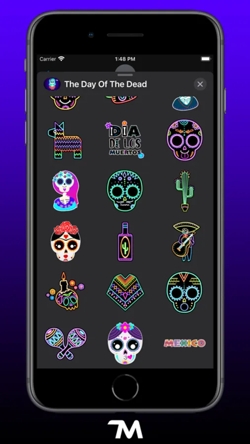Express your self with this Mexican sticker pack that includes 30 emojis for your day of the dead celebration. Use T-Mojix stickers in your chats, scale, and rotate, you can even place them on photos you send and receive!
