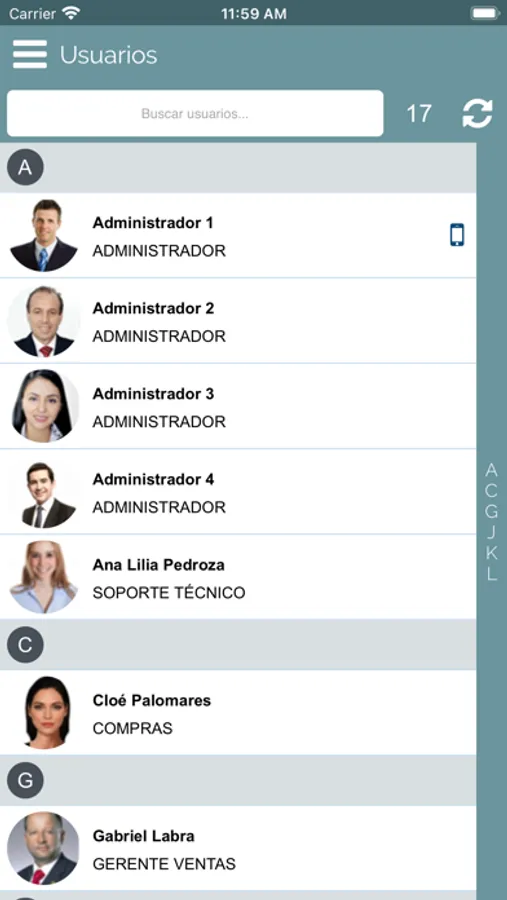 - Usuarios Conectados, mostrara un listado de usuarios indicando si esta en linea.