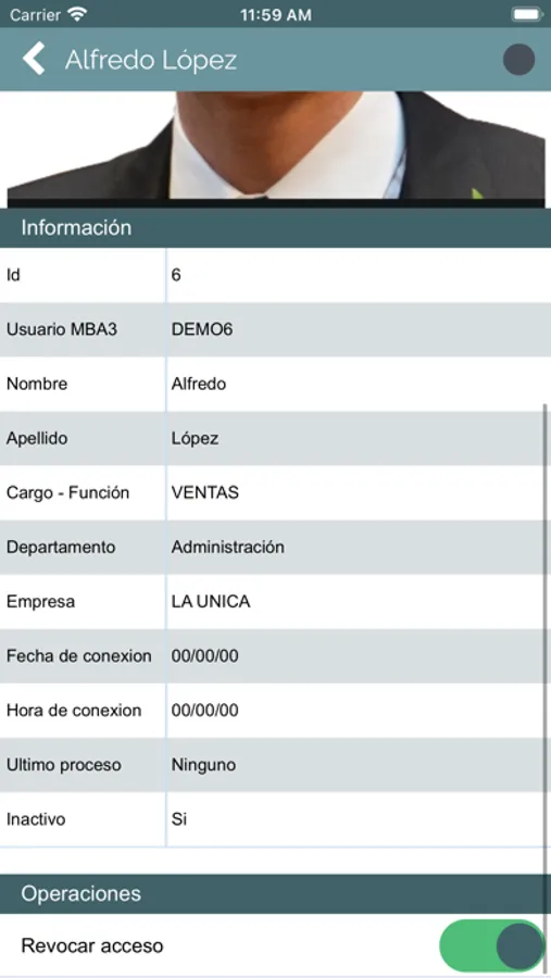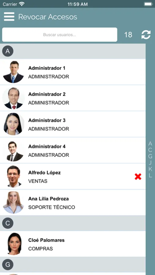- Listado de Usuarios, se mostrara los usuarios creados en SMART ERP mostrara la información de cada usuario.