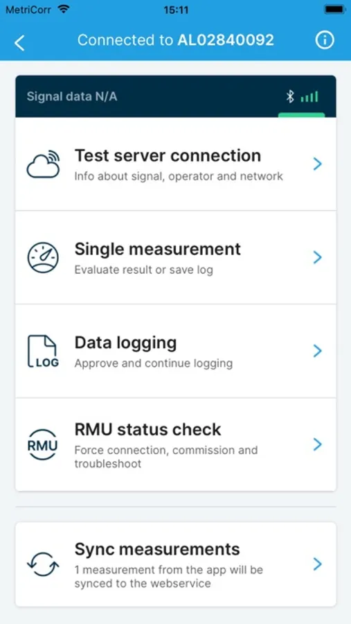 The users can perform a single spot wise measurements and transfer them to web service using sync process. The app can also be used to configure the data loggers i.e. set up of sampling interval and logging mode to either offline or RMU.