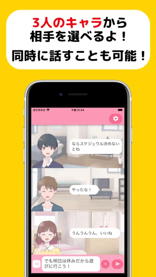3 人のキャラがいろんな表情を見せてくれるよ!