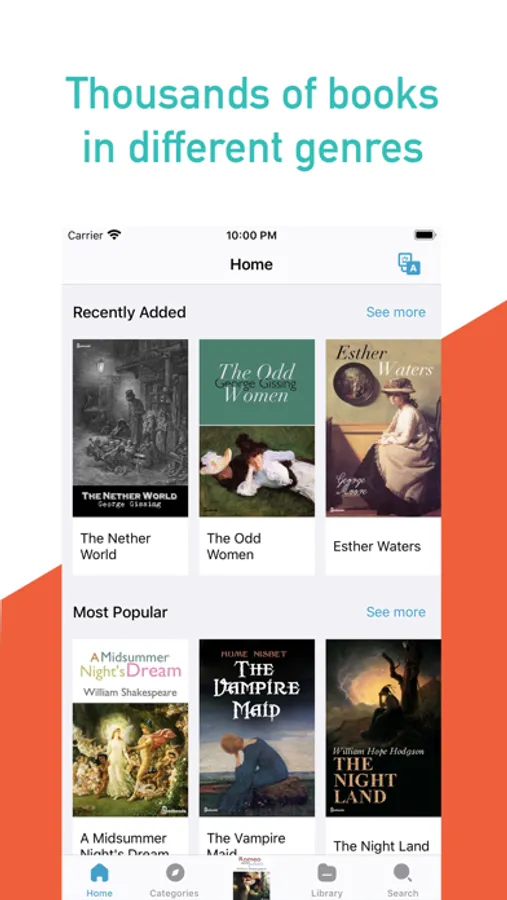 Ebook reader - Feedbooks lets you read your favorite books in different genres including Historical; Science Fiction; Mystery & Detective; Action & Adventure; Short Stories; Horror; Drama; War & Military; Religion; Travel; Arts; Business & economic, etc,. The app offers a large quality number of free books available in English, French; German; Italian; Spanish.