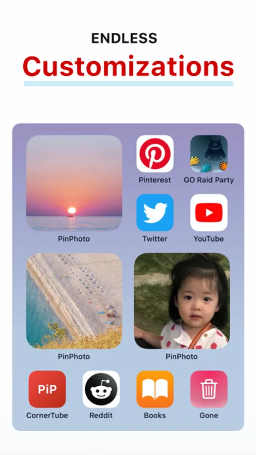Pin Photo is the easiest way to make your home screen "yours". No longer the days when it's just icons and icons and icons. You can make it however you want: