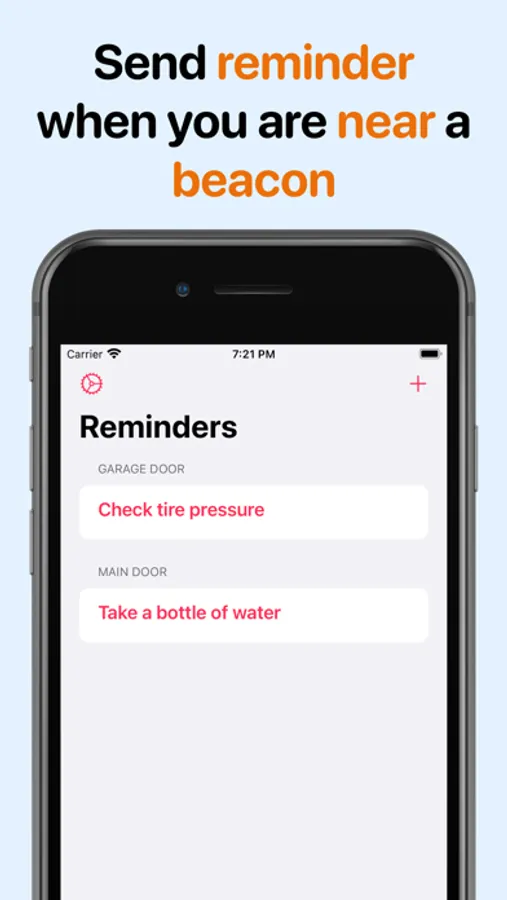 Reminder Buddy work with iBeacon so you need to have one to work with this application.