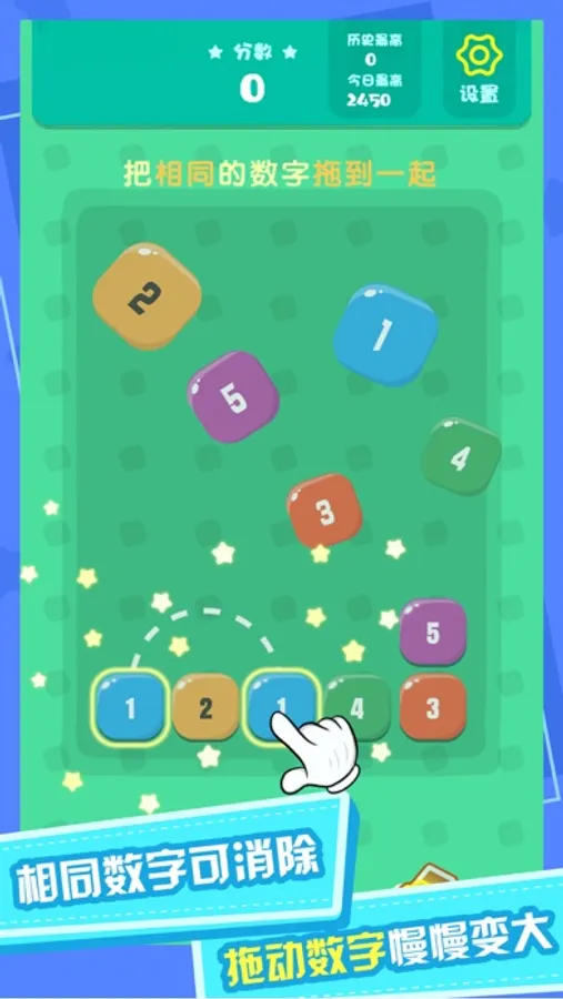 拖动合并相同数字,获得更大的值,合并的数字越大,分数越高,快来挑战自己吧~
