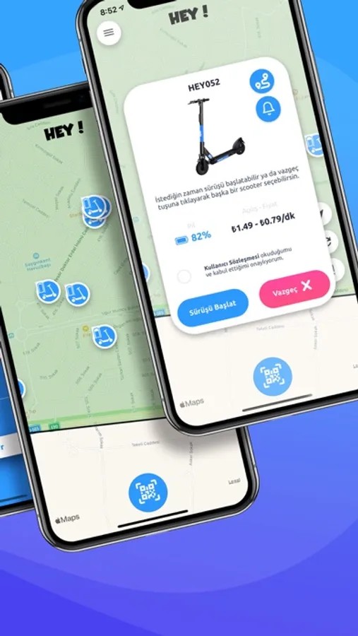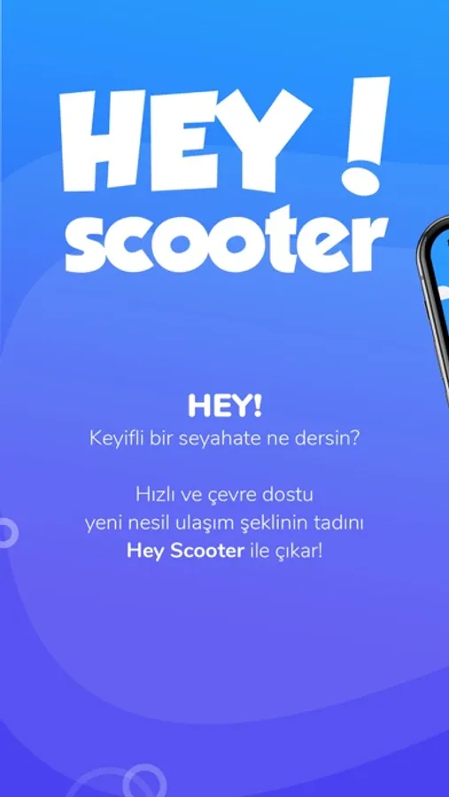 HEY! Scooter mikro ulaşım için geliştirilmiş eğlenceli bir elektrikli araç paylaşım konseptidir. İstediğin yerden al ve istediğin yere bırak ile seyahatinize özgürce yapmanızı sağlamaktadır. Sunduğumuz kiralama olanakları ile trafik sıkışıklığı yaşamadan, park bedellerini endişe etmeden ve ekonomik olarak kalabalık şehirlerde yolculuk imkanı sağlamaktayız. Üstelik elektrik scooterlarımız; yürümek, bisiklet kullanmak veya toplu taşıma araçlarından daha hızlıdır.