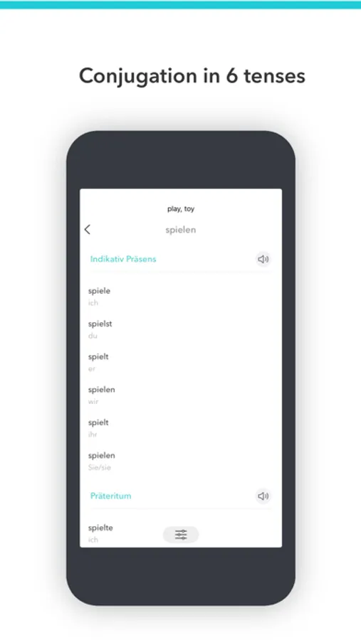 PNP is a dictionary, which contains over 220 Germany verbs. PNP has conjugation in 6 tense. App has pretty-look and intuitive interface. Furthermore you can use PNP offline.