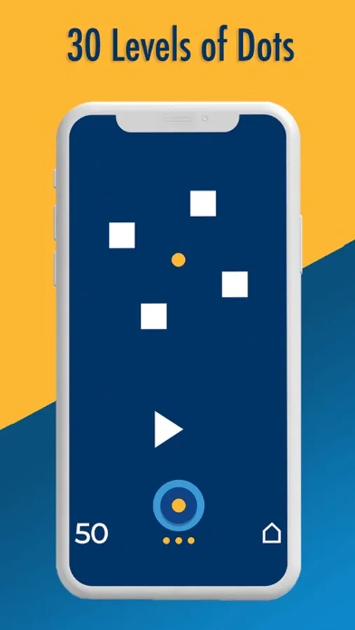 Playing the game is easy: Simply touch to shoot the yellow dot avoiding the obstacles. You get three lives each time you try. 50 shots to the yellow dot to cross a level. You can shoot multiple dots by keeping the button pressed or simply shoot dots, one by one by tapping the pad. The right moment is important as the dots will waste if they hit the barriers.