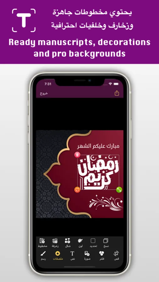 - امكانية اضافة أشكال وزخارف ومخطوطات جاهزة من داخل التطبيق