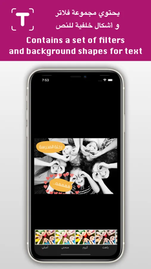 - امكانية وضع شكل خلفية للنص
