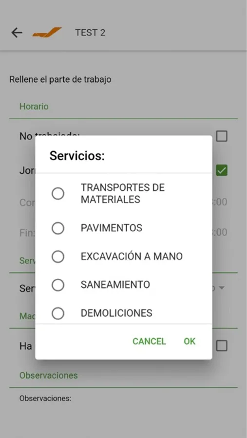 - Alta servicios / maquinarias para gestión de partes de empleados.