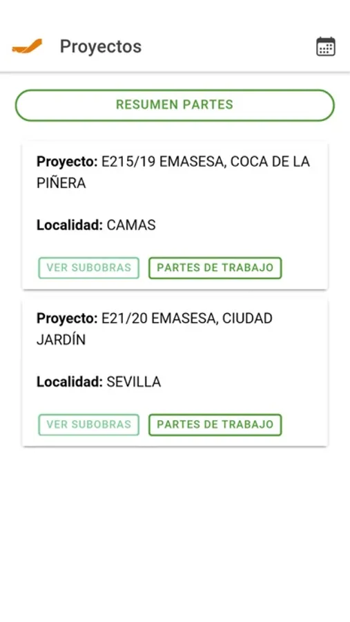 Los empleados seleccionan mediante nuestro calendario, el proyecto y servicio realizado, rellenando su parte de trabajo con la información solicitada de servicios y maquinaria usada.