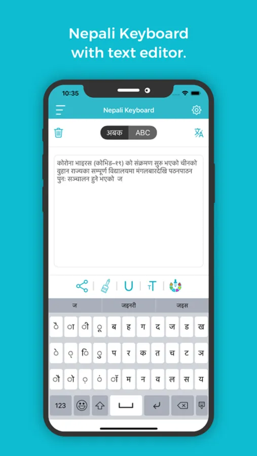 • Once you start typing, you can underline, color or change the font of any letter to emphasize or de-emphasize it in this best Nepali Keyboard And Translator for iOS.