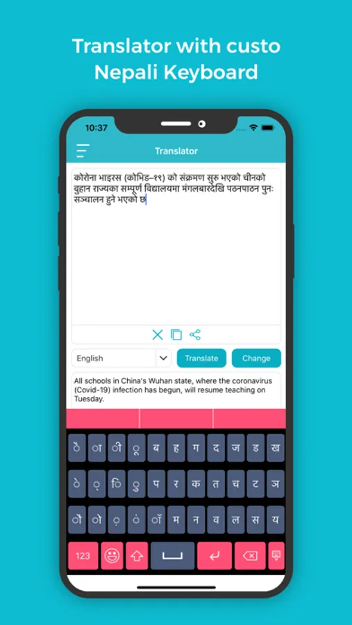 • Once you’re done with your writing in Nepali, you can use the translator feature in the best Nepali Keyboard And Translator for iOS to convert the text into any other language as well.