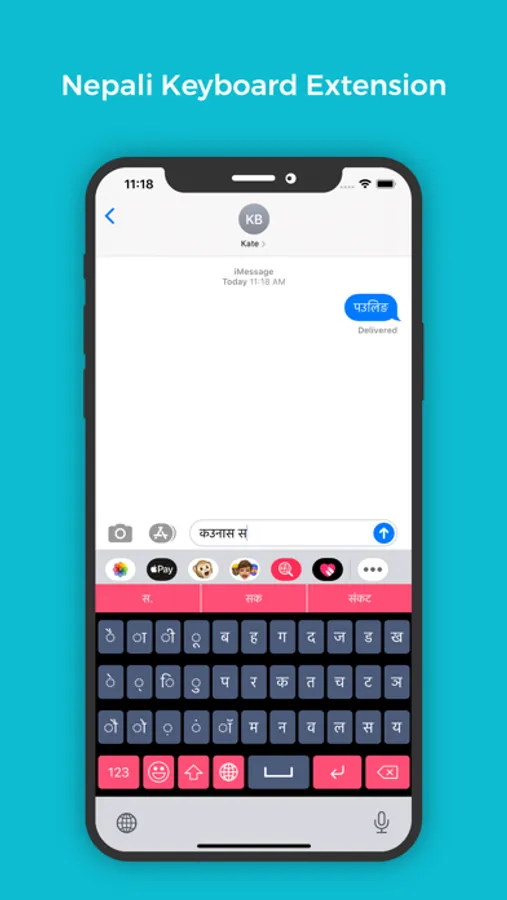 • Another important feature in the Nepali keyboard and Translator, and one that makes this the best Nepali keyboard and Translator for iOS is its adaptability with apps. Use the keyboard extension feature to type Nepali directly into any app.