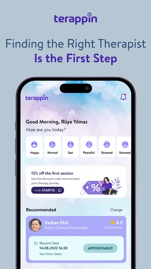 In this direction, when you sign in to Terappin, we ask you a few questions, and after these questions, you are matched with clinical psychologists who are specialists in their fields. After finding the best-matched psychologists for you, you can start therapy with online psychologists immediately or make an online appointment for the day and time you want.
