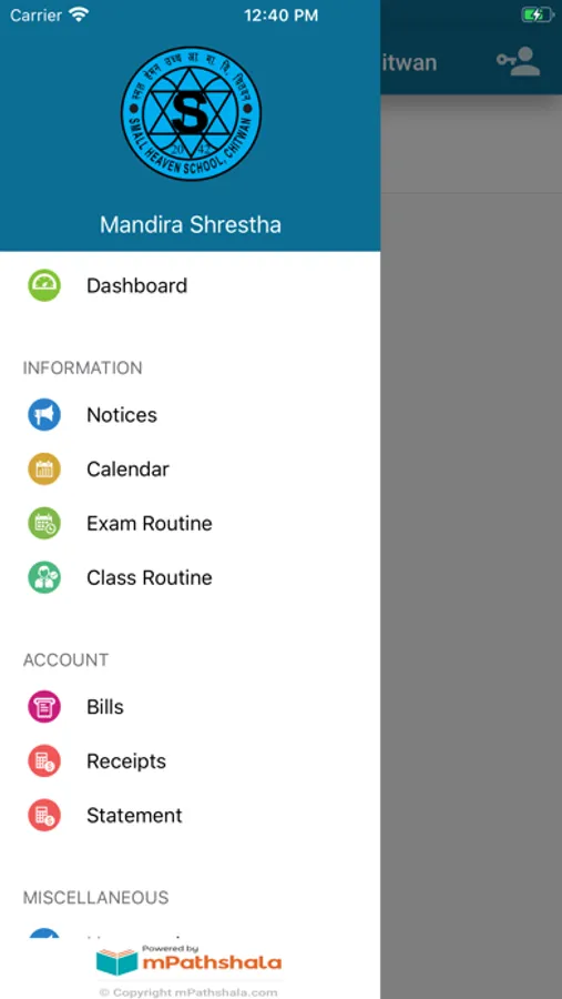 Parents can now view information maintained by the school about their children through the app. This information includes: class/exam routines, school calendar, homework, attendance records, progress reports, bills, receipts, etc. They can also send message to the school as well as receive regular communication from the school.