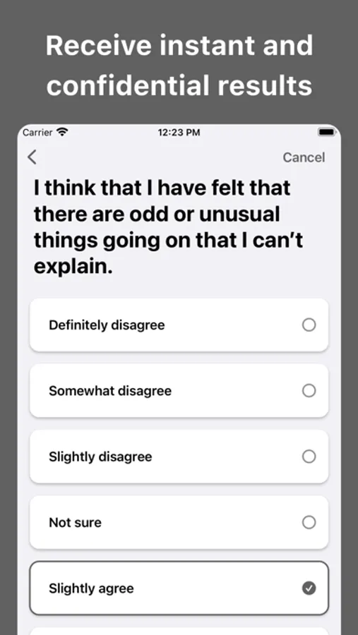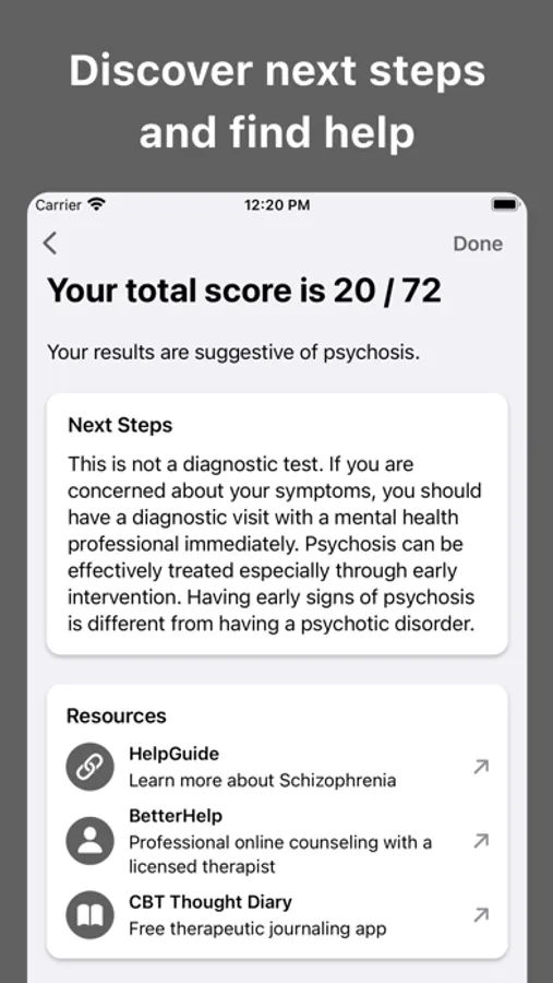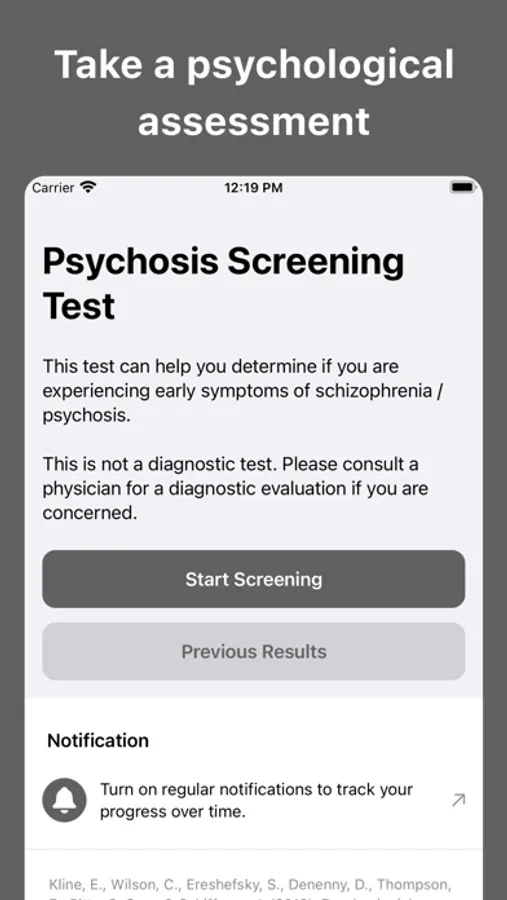Disclaimer: This is NOT a diagnostic test. A diagnosis of psychosis or schizophrenia can only be provided by a qualified healthcare professional.