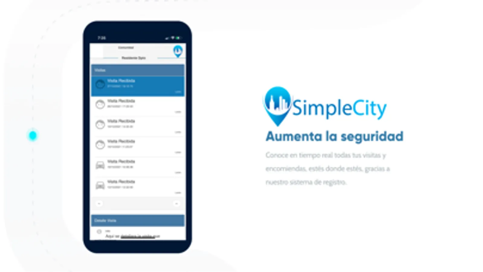 Simplecity es un software que busca aumentar la seguridad y el bienestar de las personas que residen en cualquier comunidad, siendo simples y sencillos a la hora de buscar soluciones. Con esta app los residentes pueden enterarse de sus visitas, encomiendas, espacios comunes y los principales indicadores financieros de la comunidad como son gastos comunes, cobros, multas, entre otros. Simplecity no es un simple software de administración, somos el software de administración que hace la vida más simple.