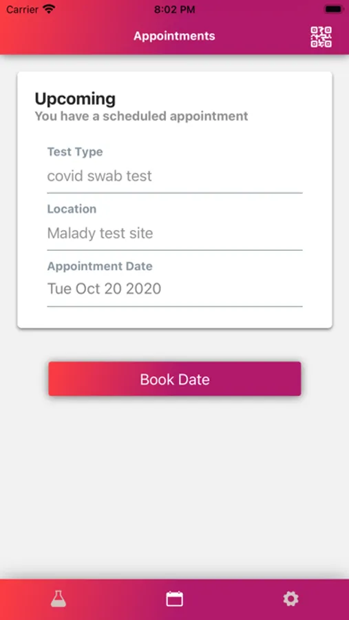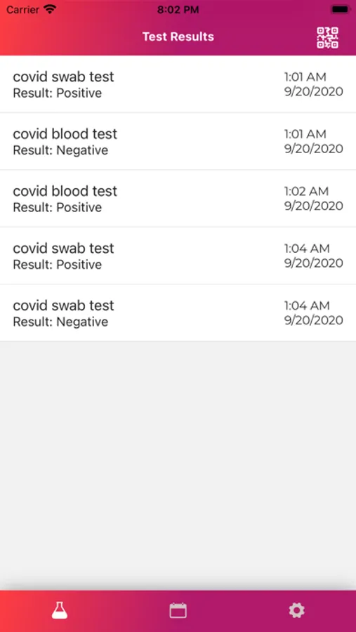 Get quick access to your test results from Malady supported test sites. Within moments of test results being confirmed, see them display on your phone. Featuring a QR code for easy test results.