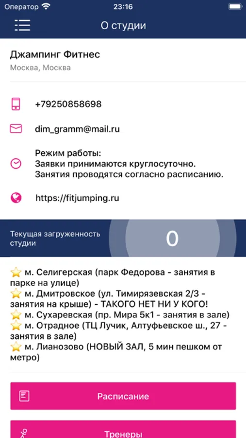 С помощью приложения вы можете следить за расписанием студии, оперативно получать информацию об изменениях в расписании, специальных предложениях и новостями, а также оплачивать занятия и абонементы. Ввы можете купить батут, взять его в аренду и заниматься онлайн джампингом дома или на даче. За репосты в соц. сетях предусмотрены призы, подарки и скидки на занятия.