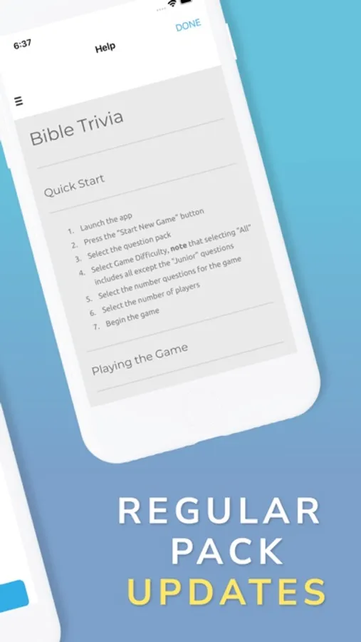 Bible Trivia is fun for the whole family! Easy to use, with difficult level for all ages. This app helps review key stories in the Old and New Testaments, while adding some challenge and excitement. Supports up to 4 players. New packs will be added regularly!