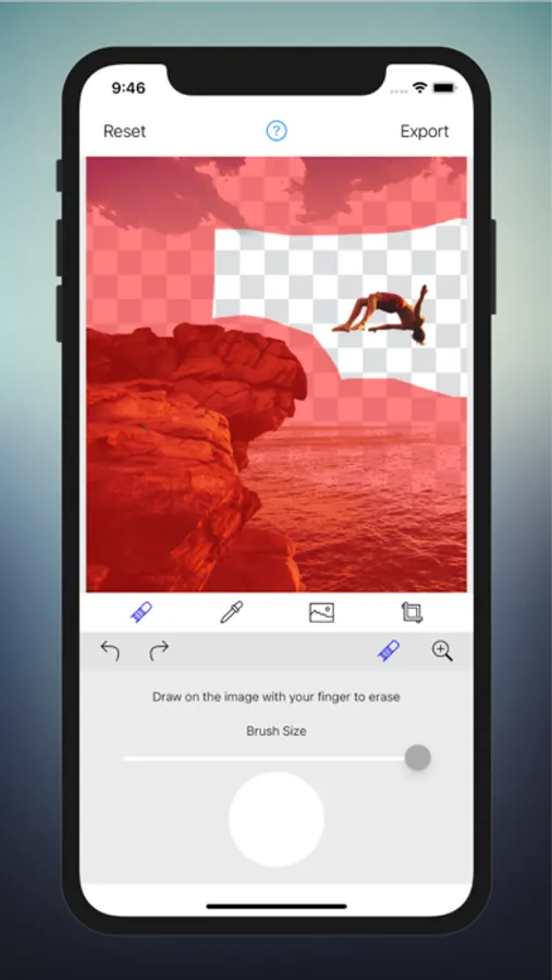 If the colors you pick aren’t enough to erase every thing you wish, you can trust the brush tool to get the job done. Use your finger or Apple Pencil to manually erase. You can even zoom in on the image to increase accuracy.