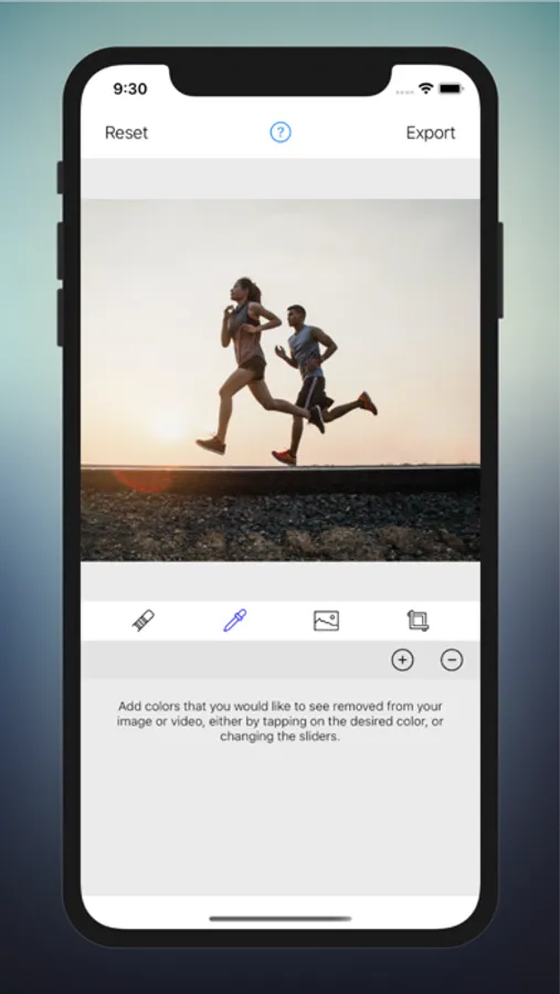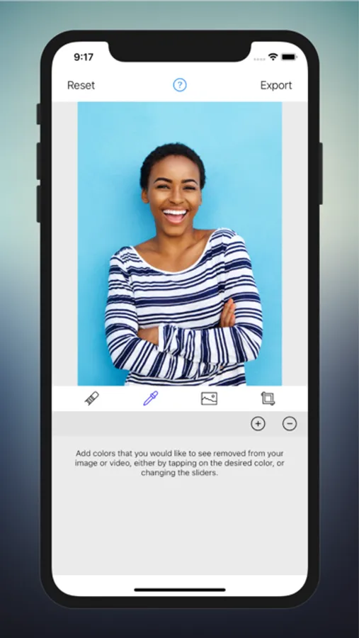 Use the color remover tool to make a list of up to 10 colors you wish to remove, simply by tapping on it with your finger.