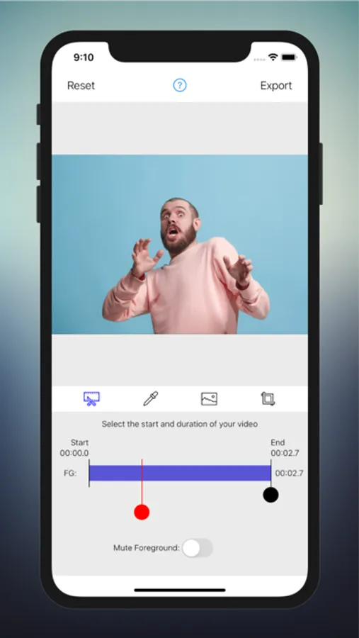 Use the background picker tool to choose a new background. You can pick a video or image from your photos library, or pick any color you want. If you are working with an image as your foreground, you can choose a transparent background as well.