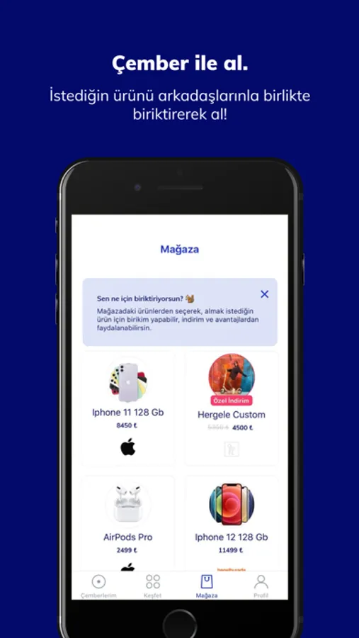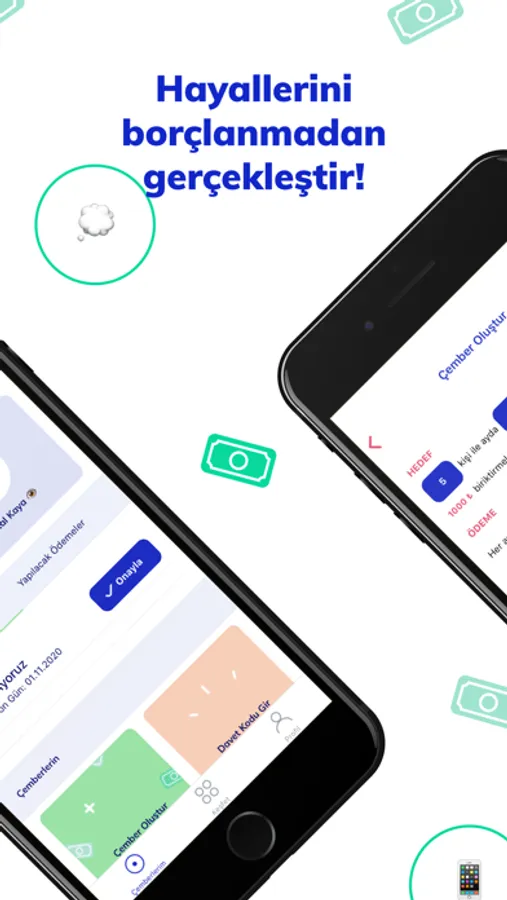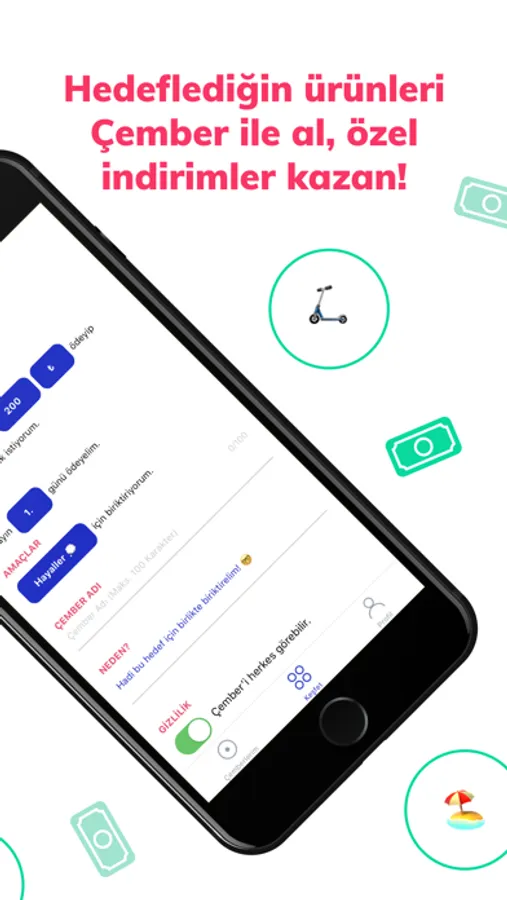 Hep hayalini kurduğun ama bir türlü para biriktiremediğin o seyahat, bilgisayar, bisiklet veya istediğin herhangi bir şey için şimdi bir çember oluştur, hayallerini paylaştığın arkadaşlarınla birlikte biriktirebilirsin. Çember Pazaryeri sayesinde ödeme alma sırası sana geldiğinde hedeflediğin ürünleri satın alabilmen için sana özel avantajlardan faydalanabilirsin.
