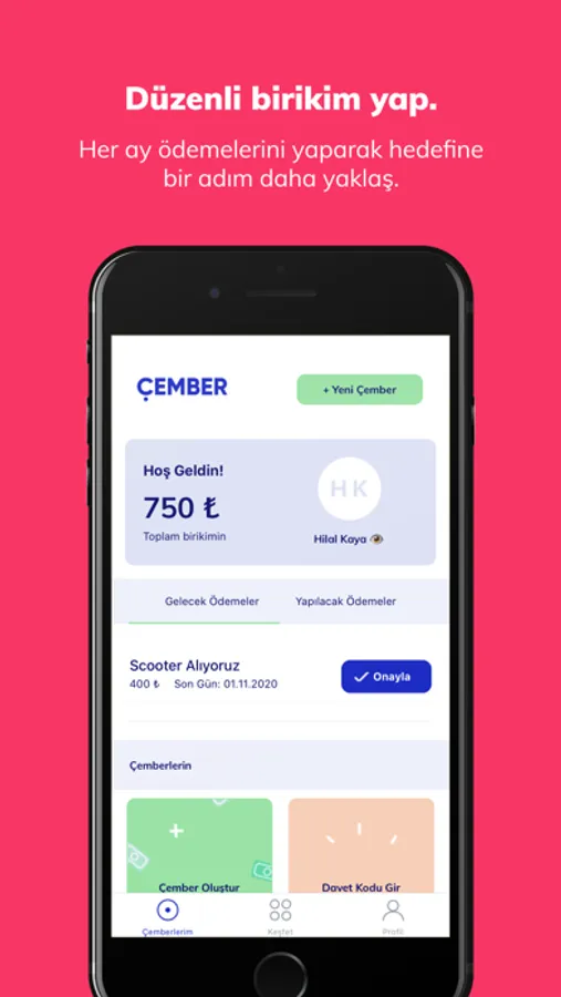 Arkadaşlarını Davet Et: Seninle aynı hayale sahip olan arkadaşlarını, aile bireylerini davet et. Çember ne kadar kalabalık olursa hedefine ulaşmak için aylık ödemen gereken miktar o kadar az olur. Unutma, Çember’de kullanıcılar bir çembere sadece davet kodu ile katılabilirler.