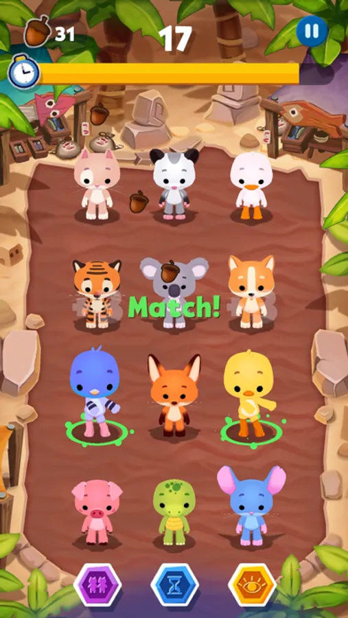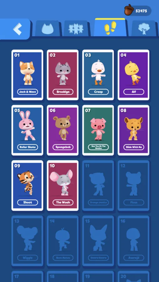 Match the pairs of animals performing the same Dance Moves! Dance your way into unlocking new Worlds, Characters, Dance Cards and more!