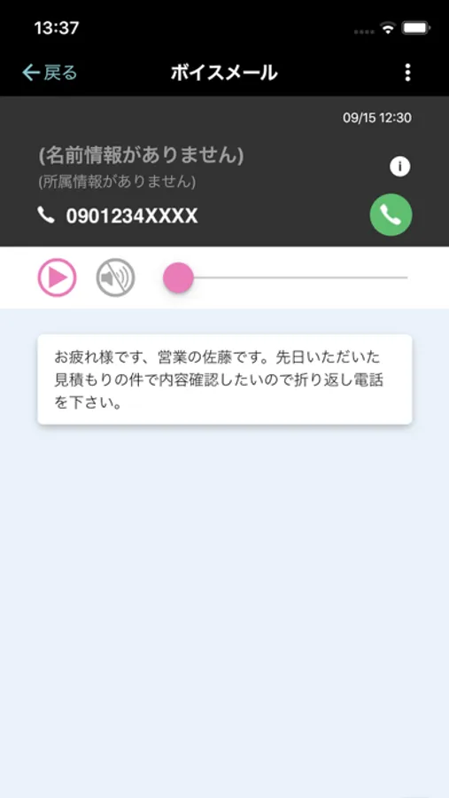 PCのブラウザ上でも留守番電話の内容を確認し、音声を再生できます。わざわざスマホを用意する必要がないため、ビジネスシーンでは効率的な時間の使い方ができるようになります。