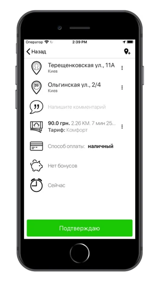 Заказ такси в городе Киев с помощью удобного и простого в использовании мобильного приложения для вызова такси.