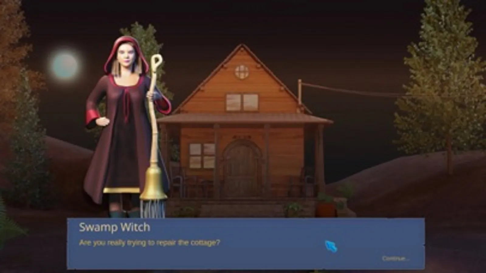 Granny the witch returned to her forest cottage. To her huge surprise, the cottage was wrecked! The doors, the walls, and even the pavement was destroyed! Someone really went to town on it!