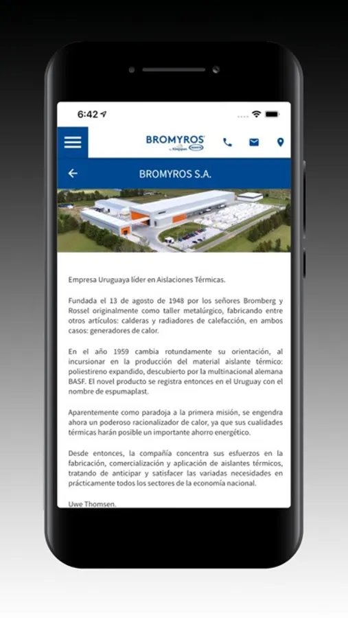 BROMYROS cuenta con más de 70 años de trayectoria, brinda el mejor Servicio Integral en soluciones constructivas y aislamiento térmico. Contamos con dos plantas industriales, ubicadas en los departamentos de Canelones y Montevideo – Uruguay.